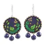 Breath takingly beautiful hand painted Terracotta earrings using the motif of Indian Peacock. Light weight Jewellery which will go very well with Ethnic and Casual wear. Size :Length of Earrings: 4 cms.Width : 2 cms.Material & Care: Base material: Clay Earrings : 92.5 Silver hook earringsSpecifications: Type: EarringsTrends : HandcraftedCare Instructions:Wipe your jewelry with a soft cloth after every useAlways store your jewelry in a flat box to avoid accidental scratchesKeep sprays and perfumes away from your jewelryDo not soak your jewelry in waterWhat is Terracotta Jewelry :Making terracotta jewelry is a long drawn out process spanning many days. Due to the nature of clay, artisans need to be dexterous and gentle with the source material, all the way up to the final step.Each piece is lovingly crafted and is one of a kind! The handcrafted products may have slight irregularities or imperfections. These irregularities are the result of the human involvement in the process and it adds charm to the finished products while ensuring you have a one of a kind piece.