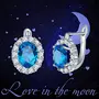 Crystals from Swarovski Stylish Clip On Studs Earrings for Women and Girls Party Wear Fashion Jewellery (Blue)