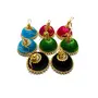 Designer Jhumka with Pearl Earring Set Green Pink Black Turquoise Blue Combo Pack of 4 pair