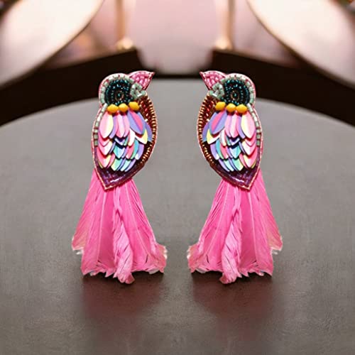 Dulcett India | Multicolor Beaded Contemporary Bird Studs Earring For Women & Girls | Light Weight Beaded Earrings For Women & Girls | Handmade Feather Beads Earrings for Women & Girls. One Size