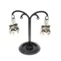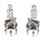 Stone studded silver jhumka earrings in dual colour. The earrings are studded with sparkly white stones. The jhumka has small faux pearls dangling.Earring length: approx 6.5cmEarring back: push studSuitable for: Party wear and dailywearCare InstructionsHandle with love and careKeep away from humidityWipe with a soft dry cloth after wearingStore in an airtight box