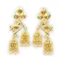 Golden Matt Finish bird design jhumka earrings with small white pearly beads.It features a cockatoo bird on a branch and two cage design jhumkas and dangling beads.The bird's eye is studded with a tiny red stone.Elegant look and light .Earring back: pushEarring length: approx 7 cmCan be worn both as partywear and casual wearCare InstructionsHandle with love and careKeep away from humidityKeep away from chemic& perfumeWipe with a soft dry cloth after wearingStore in an airtight box