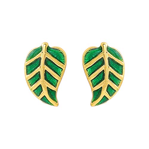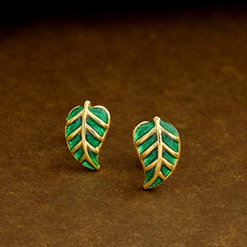 HomeFashionEarringsGehena by Estele - Gold Tone Green Willow Leaf Stud Earrings For Women Suitable for All Occasions Special for Wedding Engagement Anniversary and Birthday