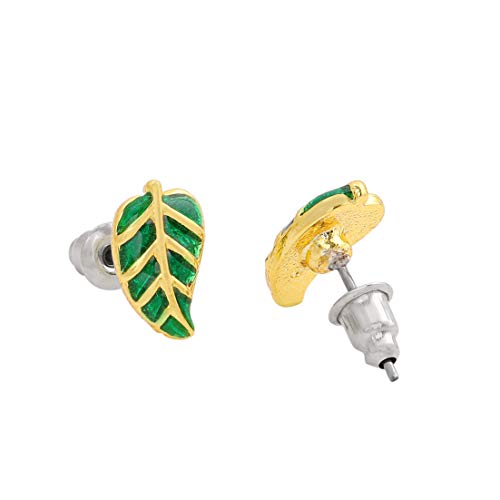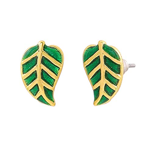 Gehena by Estele - Gold Tone Green Willow Leaf Stud Earrings For Women Suitable for All Occasions Special for Wedding Engagement Anniversary and Birthday