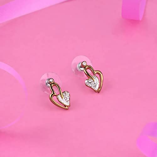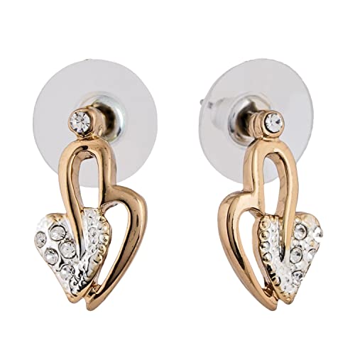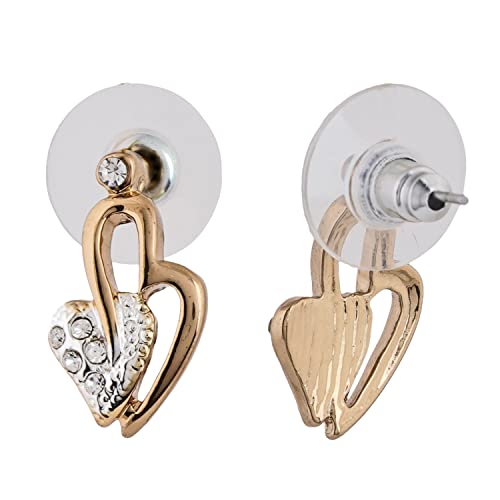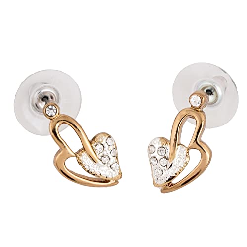 Girl's 24 Kt Gold and Silver Plated Heart Hug Stud Earrings