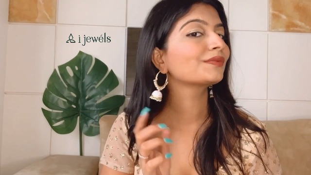 I Jewels 18k Gold Plated Indian Bollywood Festive Party Wear Enamel Pearl Hoop Jhumki Earrings for Women (E2915)