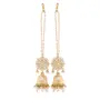 This Earring set with detachable hair chain is crafted in 18K gold plated finish - these jumki earrings are really special .The Earrings feature Kundan-studded. It can be used both the ways (with chain/without chain)since it's detachable. Be stylish and smart with these Earrings. Wear it with a suit or a saree and lehenga for an ethnic yet classy look. This earring set is a great option and a perfect pick for your wedding functions. Be assured to find a variety of contemporary and traditional designs in the mesmerising collection that we offer Adding a unique touch to this kundan work earrings with an unconventional shape these earrings are statement worthy.