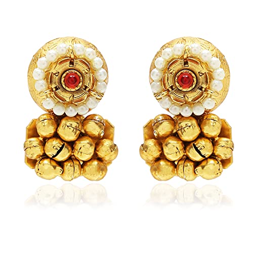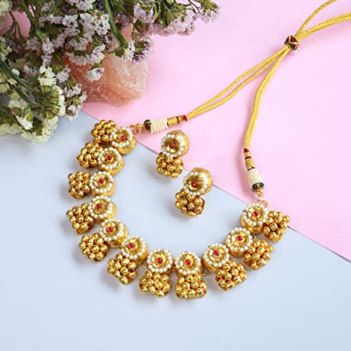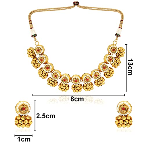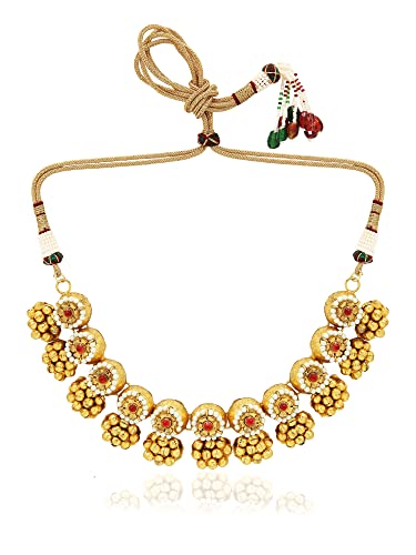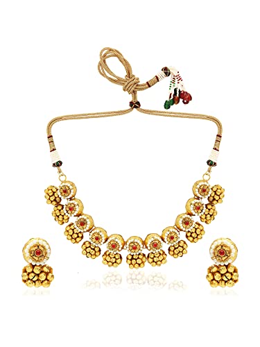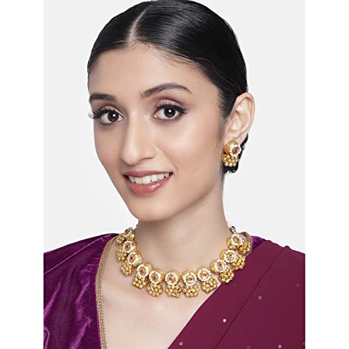 I Jewels 18k Gold Plated Indian Wedding Bollywood Antique Choker Necklace Jewellery Set with Earrings for Women (MC092-94)