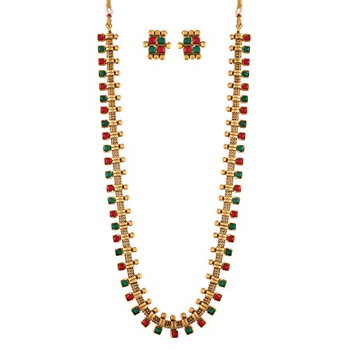 I Jewels 18K Gold Plated Indian Wedding Bollywood Golden Necklace Jewellery With Earrings For Women & Girls (MC04)