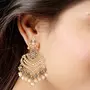 I Jewels 18K Gold Plated Intricately Designed Womens Traditional Long Earrings Enamel Glided With Kundans & Pearls (E2903)