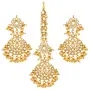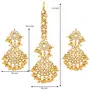 I Jewels 18K Gold Plated Traditional Handcrafted Earrings With Maang Tikka Encased with Faux Kundan & Pearl for Women/Girls