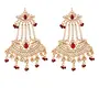 DIMENSIONS: Earring Height - 12 cm x Earring Width - 7 cm. This Earring set is crafted in gold plated finish with stunning antique finish - these earrings are really special .The Earrings feature Kundan-studded.Be stylish and smart with these Golden Earring. Perfectly crafted. Wear it with a suit or a saree and lehenga for an ethnic yet classy look. This earring set is a great option and a perfect pick for your wedding functions. Be assured to find a variety of contemporary and traditional designs in the mesmerising collection that we offer