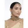 I Jewels 18k Gold Plated Traditional Kundan Pearl Choker Necklace Set with Earrings & Maang Tikka For Women (K7095G)