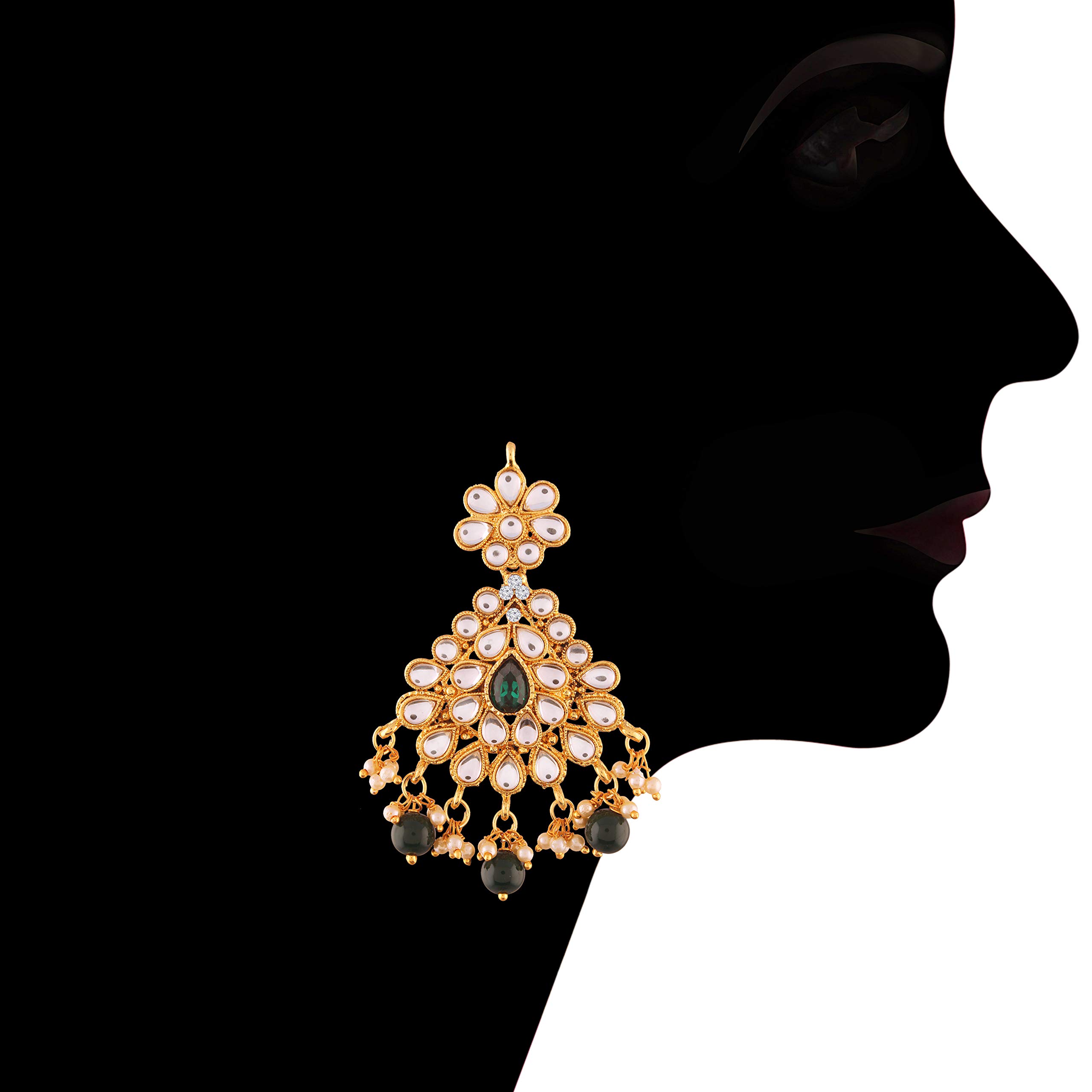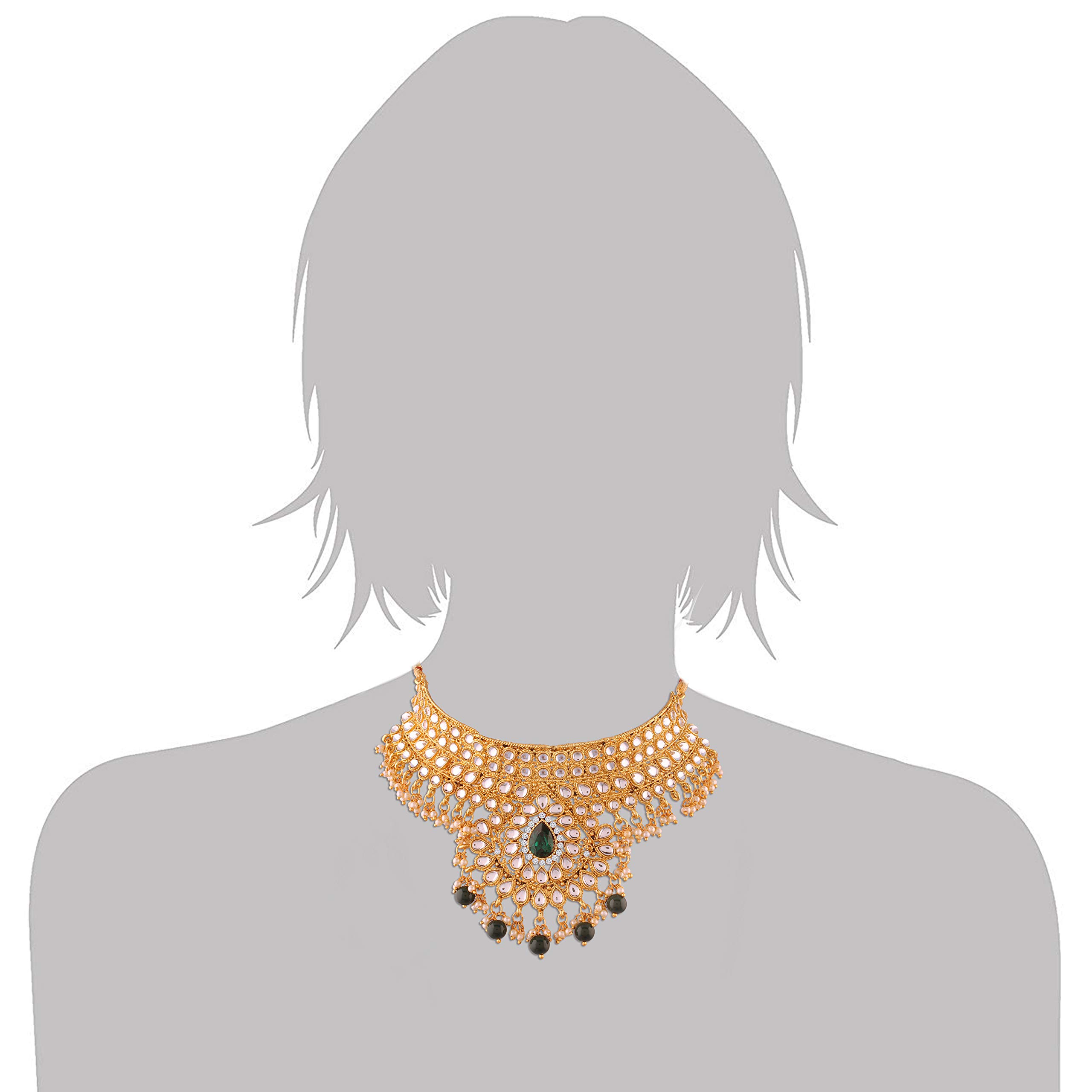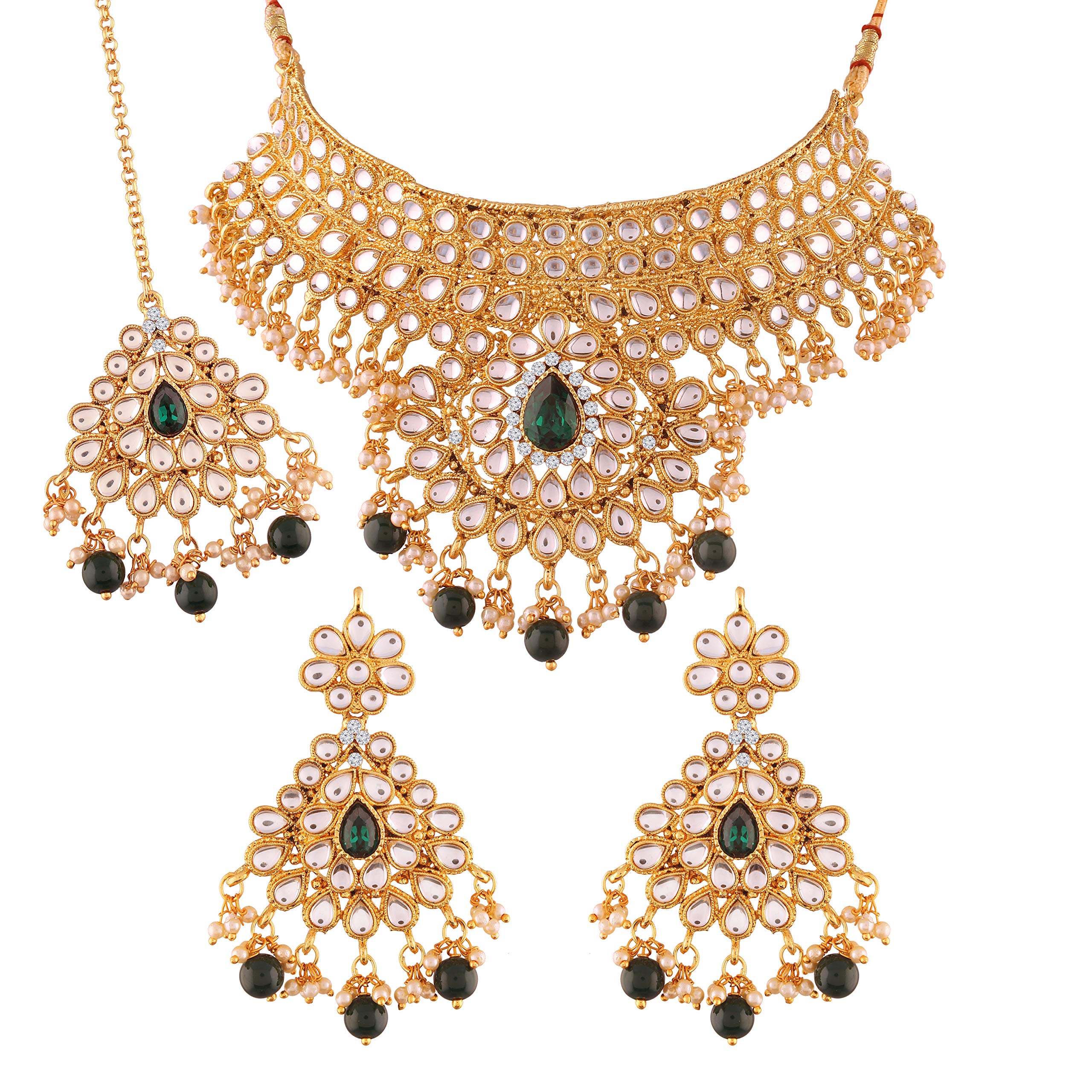 I Jewels 18K Gold Plated Traditional Stone Studded Choker Necklace Jewellery Set with Earrings & Maang Tikka For Women (K7074G)