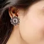 I Jewels 18k Silver Oxidized Indian Wedding Bollywood Kundan Studded Meena Work Designer Circular Stud Earrings for Women(E2936ZG)