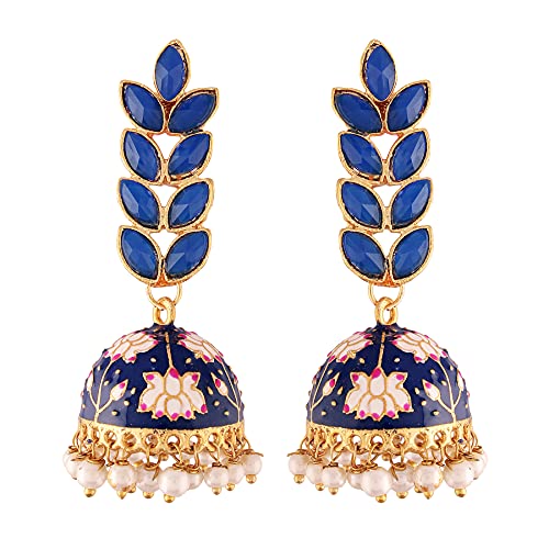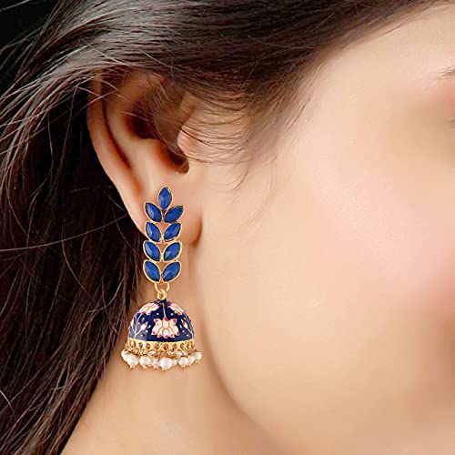 These enamel hoop jhumka earrings are a beautiful and unique addition to any jewelry collection. The design features a combination of hoops and jhumkas that create a stunning and intricate look. The enamel detailing on the earrings adds a pop of color making them a versatile accessory that can be paired with a variety of outfits. The earrings are lightweight and comfortable to wear making them suitable for all-day wear. The high-quality materials used in the construction of the earrings ensure their durability and longevity. These enamel hoop jhumka earrings are perfect for adding a touch of bohemian chic to a casual outfit or for dressing up for a special occasion. They make a great gift for anyone who appreciates beautiful and unique jewelry.