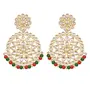 This Earring set is crafted in gold plated finish with stunning antique finish - these earrings are really special .The Earrings feature Kundan - studded. Be stylish and smart with these Golden Chandbali Earring. Perfectly crafted. Wear it with a suit or a saree and lehenga for an ethnic yet classy look.