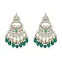 Gold plated traditional kundan studded pearl handcrafted dangle chandbali earrings are a type of ethnic jewelry that is intricately designed and crafted to be worn on the ears. The earrings feature a gold-plated metal base that is embellished with white kundan stones and pearls. The pearls used in the earrings add a touch of elegance and sophistication to the overall design. These earrings are perfect for special occasions such as weddings festivals or formal events where they can be worn to complement traditional Indian outfits such as sarees lehengas or salwar kameez. They can also be paired with western outfits for a fusion look. To maintain their shine and luster it is recommended to store them in a dry and cool place when not in use and to avoid exposing them to moisture or chemicals such as perfumes or hairspray.