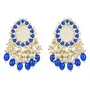 Introducing these exquisite gold plated traditional Kundan studded pearl drop earrings specially designed for women and girls who appreciate the beauty and artistry of traditional Indian jewelry. Crafted with care and precision these earrings feature stunning Kundan work and delicate pearls combined in a classic drop design. The gold plating adds a touch of luxury and elegance making these earrings a perfect accessory for weddings parties and other formal events. The drop design creates a graceful and fluid movement making these earrings a stunning addition to any outfit. The lightweight design ensures they are comfortable to wear all day long allowing you to enjoy their timeless beauty without any discomfort.