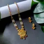 I Jewels Gold Plated Traditional Antique Temple Brass Jewellery Long Pearl Necklace With Jhumki Earrings Set For Women/Girls (MC131QG)