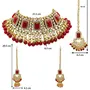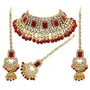 I Jewels Gold Plated Traditional Handcrafted Faux Kundan & Pearl Studded Bridal Choker Necklace Jewellery Set with Earrings & Maang Tikka For Women (IJ401)