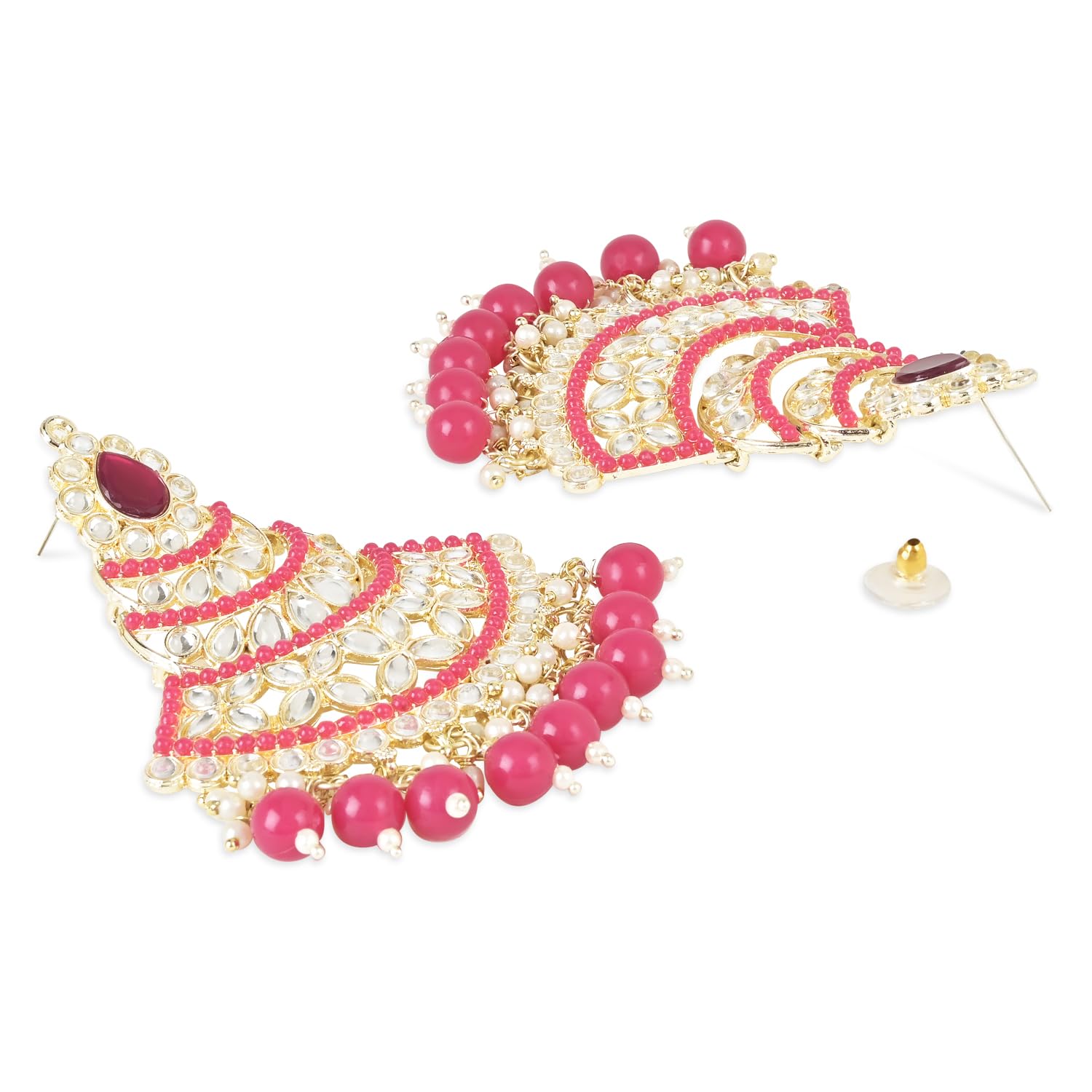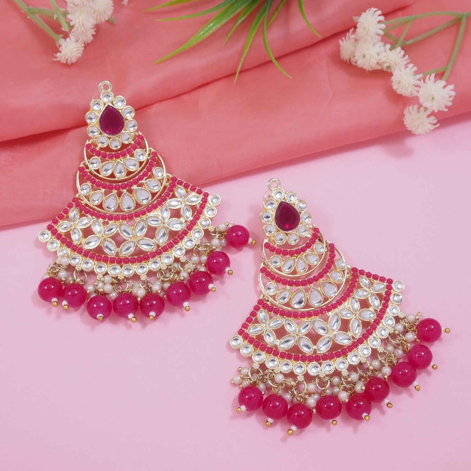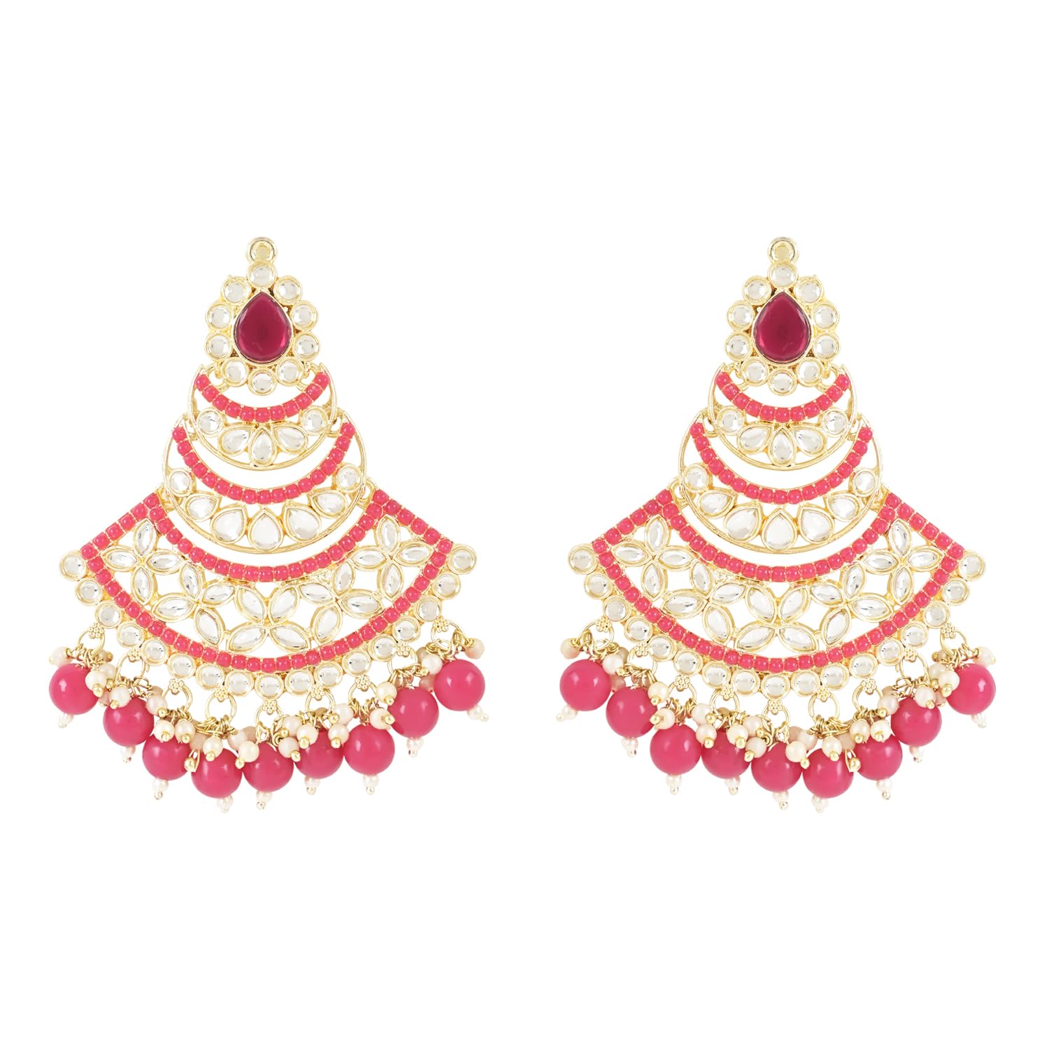 I Jewels Gold Plated Traditional Handcrafted Pearl Kundan Beaded Chandbali Earrings for Women/Girls (E3032Q)