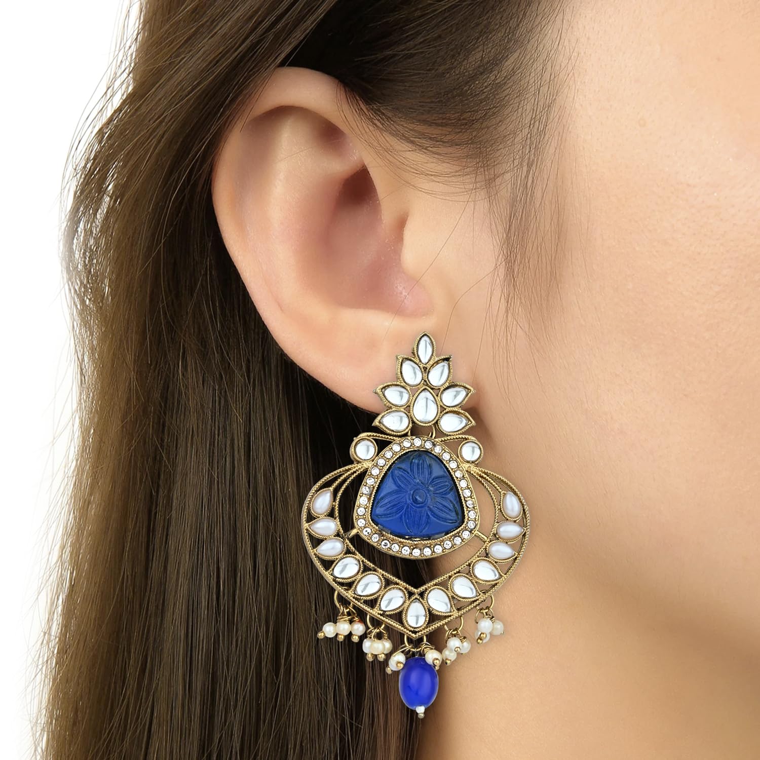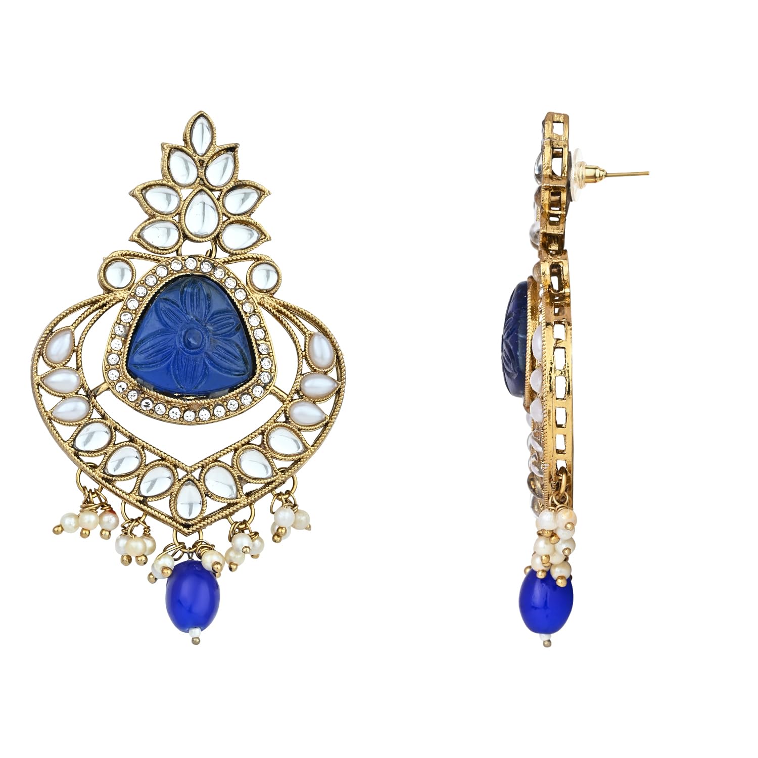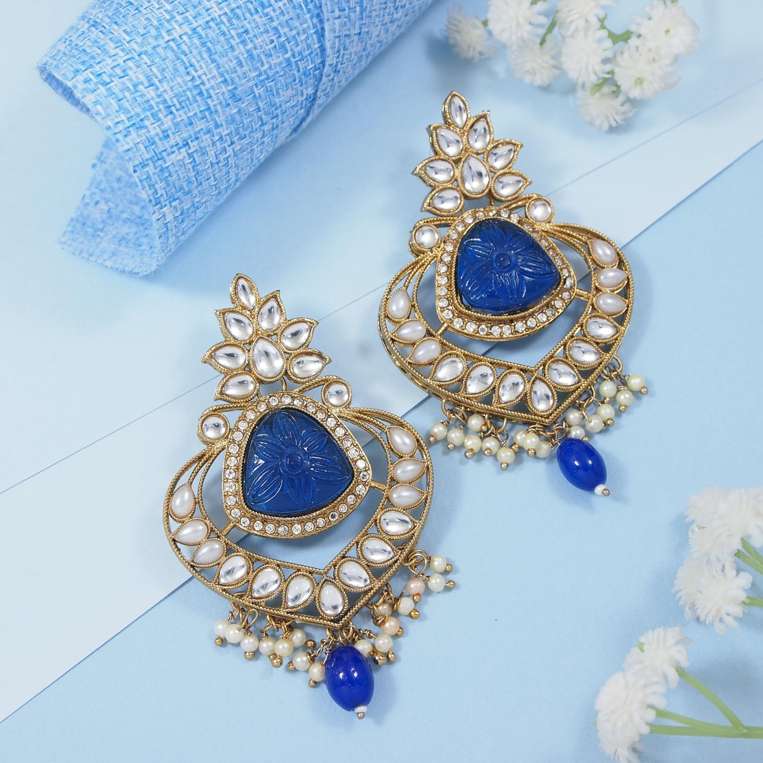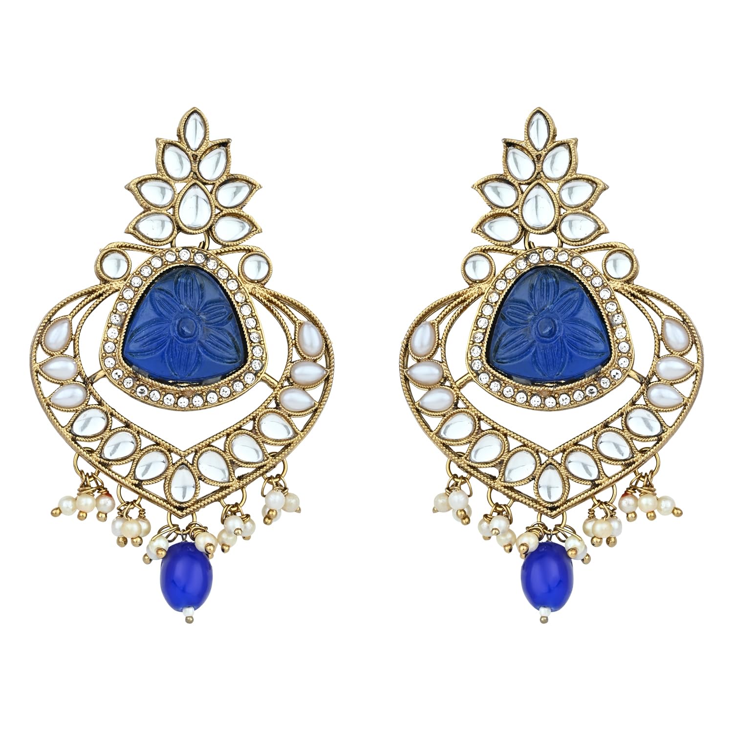 I Jewels Gold Plated Traditional Kundan Pearl Chandbali Earrings For Women And Girls (E3150)