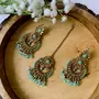 I Jewels Gold Plated Traditional Kundan Pearl Drop Earrings with Maang Tikka Set for Women/Girls