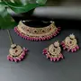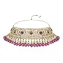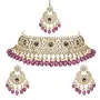 Elevate your traditional look with the included maang tikka. The delicate design combined with the radiant Kundan and pearl elements adds a touch of royalty to your hairstyle making you the center of attention at any event. The choker necklace features a statement design that gracefully encircles the neck creating a striking focal point. The gold-plated finish adds a touch of luxury making it the perfect accessory for weddings festivals or any special celebration.