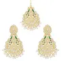I Jewels Gold Plated Traditional Kundan Pearl with Meena Work Chandbali Earrings with Maang Tikka Set for Women/Girls