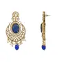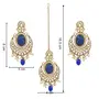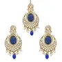 A beautiful set of jewelry that will add elegance and grace to any traditional attire.These chandbali earrings are gold plated and adorned with shimmering kundan stones that sparkle in the light. The earrings feature traditional pearl hangings that add a touch of sophistication to the design. Accompanying the earrings is a matching maang tikka which is studded with kundan stones and pearls. The maang tikka beautifully complements the earrings and adds a touch of glamour to any hairstyle.This jewelry set is perfect for weddings festivals and other traditional occasions. It also makes a great gift for any special woman or girl in your life.