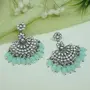 I Jewels Navratri Ethnic Stylish Silver Oxidised Kundan Pearl Chandbali Earrings For Women And Girls (E3106Z)