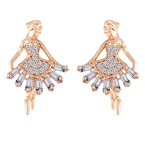 I Jewels Rose Gold Plated Indian Wedding Bollywood CZ Diamond Ballet Dancing Girl Earrings for Women (E288-9)