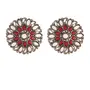 I Jewels Silver Oxidized Indian Wedding Bollywood Kundan Studded Meena Work Designer Circular Stud Earrings for Women(E2933Z)