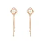 I Jewels Sparkling Glamorous Rose Gold Plated Floral Shape Stud CZ and American Diamond Pearl Studed Tassel Drop Fashionable Earrings for Women/Girls (E3111RG)