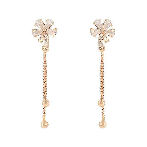 I Jewels Sparkling Glamorous Rose Gold Plated Floral Shape Stud CZ and American Diamond Tassel Drop Fashionable Earrings for Women/Girls (E3116RG)