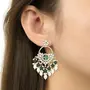 Gold plated traditional white kundan studded pearl handcrafted dangle chandbali earrings are a type of ethnic jewelry that is intricately designed and crafted to be worn on the ears. The earrings feature a gold-plated metal base that is embellished with white kundan stones and pearls. The pearls used in the earrings add a touch of elegance and sophistication to the overall design. These earrings are perfect for special occasions such as weddings festivals or formal events where they can be worn to complement traditional Indian outfits such as sarees lehengas or salwar kameez. They can also be paired with western outfits for a fusion look. To maintain their shine and luster it is recommended to store them in a dry and cool place when not in use and to avoid exposing them to moisture or chemicals such as perfumes or hairspray.