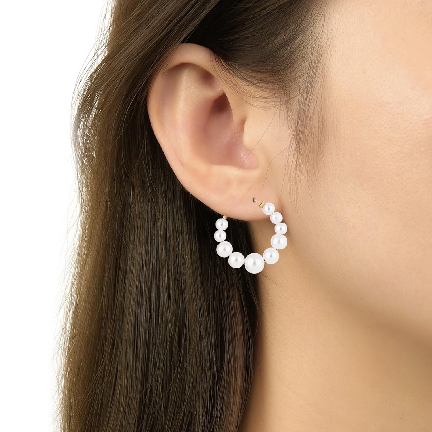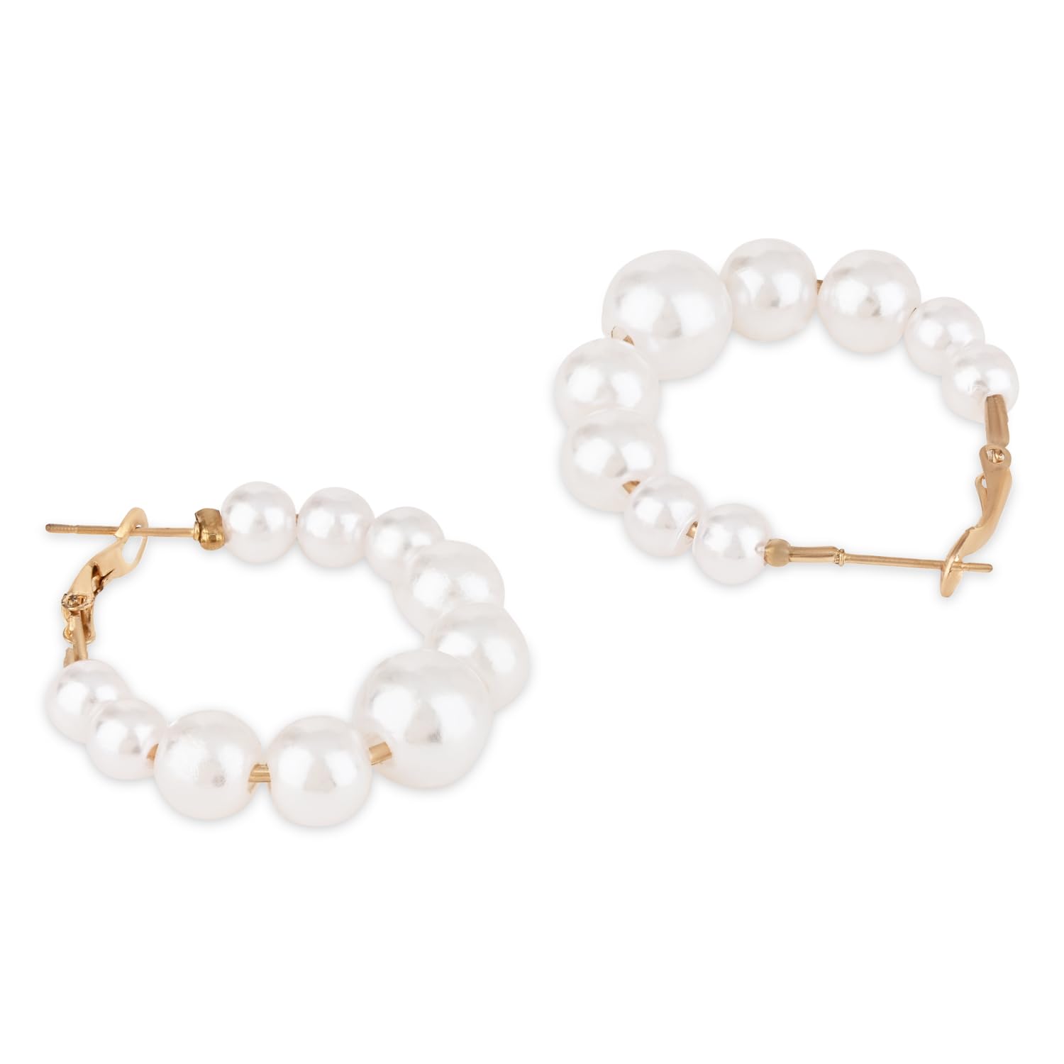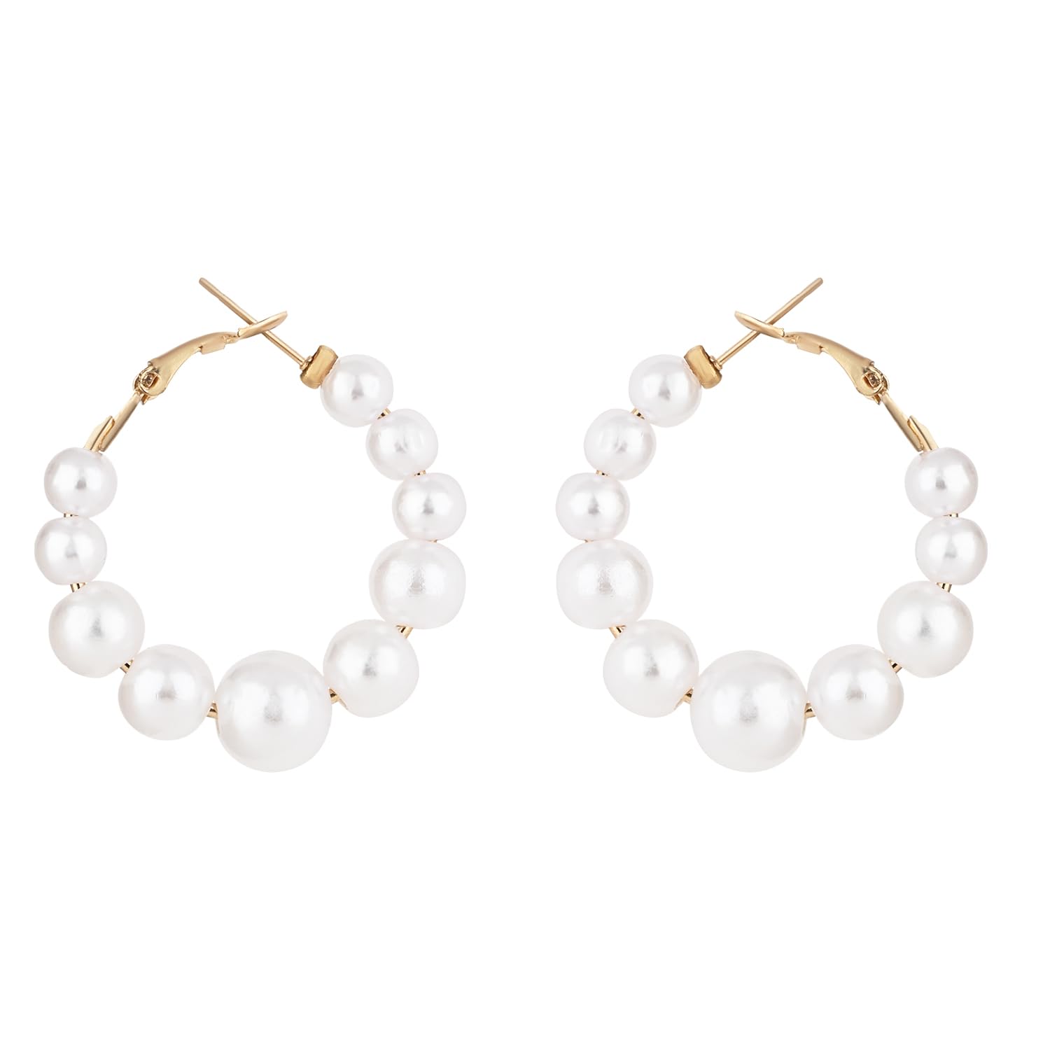 I Jewels Women Latest Stylish Gold Plated Lightweight Round Pearl Chunky Earrings (Style8) (E3211W)