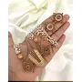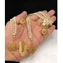 Enhance your ethnic elegance with this stunning pearl maang tikka and earrings set, designed to add a regal touch to your bridal or festive attire. This traditional South Indian accessory features gold-plated intricate patterns, delicate pearl chains, and radiant ruby & emerald embellishments, making it an ideal choice for weddings, temple visits, and cultural celebrations. Features:? High-quality gold-plated finish for long-lasting shine? Intricate handwork with pearls and stone embellishments? Lightweight & comfortable for all-day wear? Perfect for brides, bridesmaids, and festive occasions Complete your traditional look