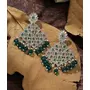 Make a stunning statement with these exquisite emerald chandelier earrings, meticulously handcrafted with shimmering stones and intricate metalwork. These show-stopping earrings feature a beautiful lattice design adorned with brilliant emerald green teardrop gemstones cascading elegantly from a dazzling ornate top.Perfect for brides, bridesmaids, and guests alike, these earrings beautifully complement lehengas, sarees, anarkalis, and even contemporary fusion wear. The versatile emerald green color pairs wonderfully with traditional outfits in green, gold, cream, red, and many other hues.Each earring showcases: Sparkling silver-toned metalwork with delicate filigree details Multiple teardrop emerald green gemstones arranged in a chandelier pattern Lightweight yet statement-making design for comfortable all-day wear Secure fastening to keep these precious pieces in placeElevate your special occasion look with these heritage-inspired earrings, whether you're attending a wedding, festival celebration, gala dinner, or cultural ceremony. These timeless pieces also make thoughtful gifts for loved ones celebrating milestone moments.Add these handcrafted ethnic earrings to your collection today and experience the perfect blend of traditional craftsmanship and contemporary elegance that will turn heads wherever you go!