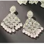 Make a stunning statement with these exquisite emerald chandelier earrings, meticulously handcrafted with shimmering stones and intricate metalwork. These show-stopping earrings feature a beautiful lattice design adorned with brilliant emerald pink teardrop gemstones cascading elegantly from a dazzling ornate top.Perfect for brides, bridesmaids, and guests alike, these earrings beautifully complement lehengas, sarees, anarkalis, and even contemporary fusion wear. The versatile pink color pairs wonderfully with traditional outfits in green, gold, cream, red, and many other hues.Each earring showcases: Sparkling silver-toned metalwork with delicate filigree details Multiple teardrop pink gemstones arranged in a chandelier pattern Lightweight yet statement-making design for comfortable all-day wear Secure fastening to keep these precious pieces in placeElevate your special occasion look with these heritage-inspired earrings, whether you're attending a wedding, festival celebration, gala dinner, or cultural ceremony. These timeless pieces also make thoughtful gifts for loved ones celebrating milestone moments.Add these handcrafted ethnic earrings to your collection today and experience the perfect blend of traditional craftsmanship and contemporary elegance that will turn heads wherever you go!