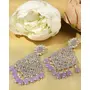 Make a stunning statement with these exquisite emerald chandelier earrings, meticulously handcrafted with shimmering stones and intricate metalwork. These show-stopping earrings feature a beautiful lattice design adorned with brilliant emerald purple teardrop gemstones cascading elegantly from a dazzling ornate top.Perfect for brides, bridesmaids, and guests alike, these earrings beautifully complement lehengas, sarees, anarkalis, and even contemporary fusion wear. The versatile purple color pairs wonderfully with traditional outfits in green, gold, cream, red, and many other hues.Each earring showcases: Sparkling silver-toned metalwork with delicate filigree details Multiple teardrop purple gemstones arranged in a chandelier pattern Lightweight yet statement-making design for comfortable all-day wear Secure fastening to keep these precious pieces in placeElevate your special occasion look with these heritage-inspired earrings, whether you're attending a wedding, festival celebration, gala dinner, or cultural ceremony. These timeless pieces also make thoughtful gifts for loved ones celebrating milestone moments.Add these handcrafted ethnic earrings to your collection today and experience the perfect blend of traditional craftsmanship and contemporary elegance that will turn heads wherever you go!