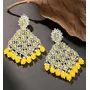 Make a stunning statement with these exquisite emerald chandelier earrings, meticulously handcrafted with shimmering stones and intricate metalwork. These show-stopping earrings feature a beautiful lattice design adorned with brilliant emerald yellow teardrop gemstones cascading elegantly from a dazzling ornate top.Perfect for brides, bridesmaids, and guests alike, these earrings beautifully complement lehengas, sarees, anarkalis, and even contemporary fusion wear. The versatile yellow color pairs wonderfully with traditional outfits in green, gold, cream, red, and many other hues.Each earring showcases: Sparkling silver-toned metalwork with delicate filigree details Multiple teardrop yellow gemstones arranged in a chandelier pattern Lightweight yet statement-making design for comfortable all-day wear Secure fastening to keep these precious pieces in placeElevate your special occasion look with these heritage-inspired earrings, whether you're attending a wedding, festival celebration, gala dinner, or cultural ceremony. These timeless pieces also make thoughtful gifts for loved ones celebrating milestone moments.Add these handcrafted ethnic earrings to your collection today and experience the perfect blend of traditional craftsmanship and contemporary elegance that will turn heads wherever you go!