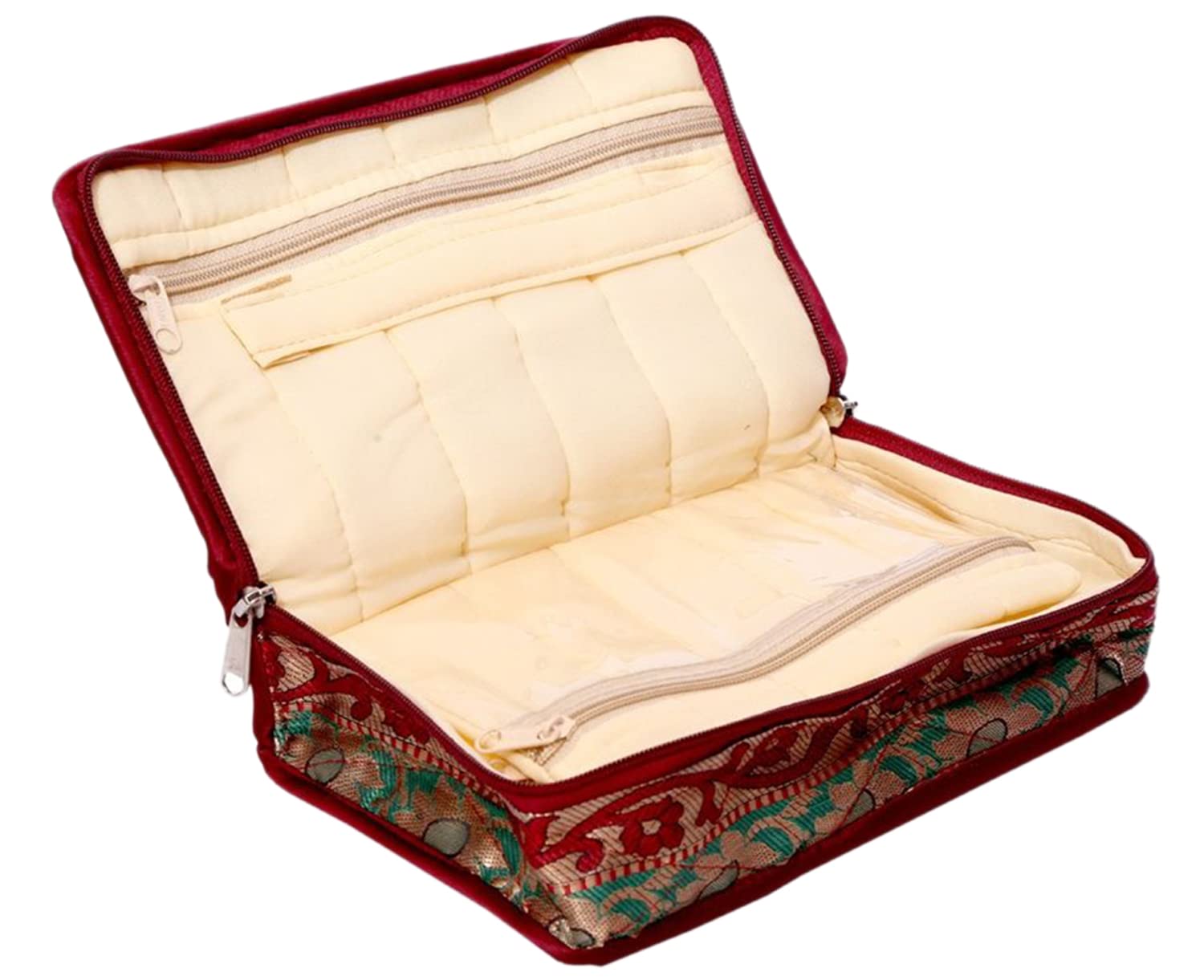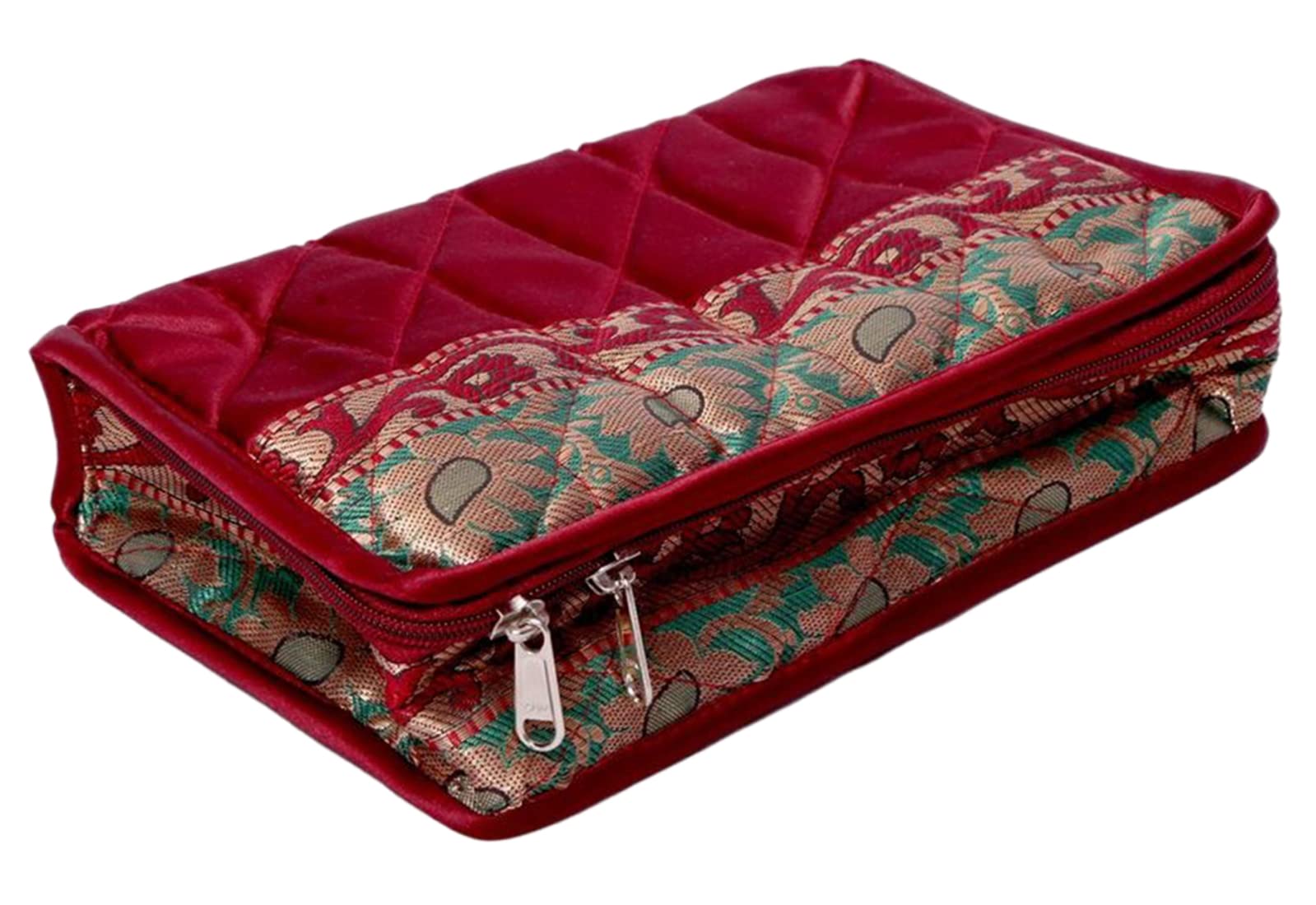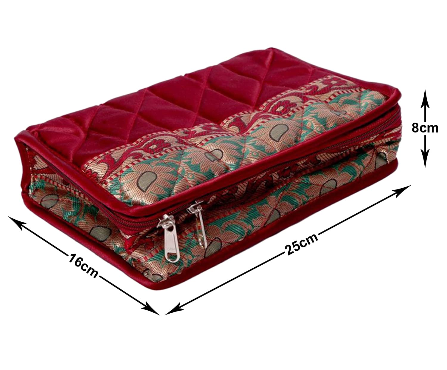 Kuber Industries multiporpose jewellery Storage Bag Long life High quality dressing kit for organizing your costly and favorite make up material. Prevent your favourite daily use jewellery item protect from dust and moisture. Multipurpose Kit Bindi Kit Daily Use Kit EarringsPendantsNecklaceBracelet Ring Pearl JewelleryAccessoryHead ropeHeadband or nail polish cuffs makeup brushes Eye shadow etc. It can portable for easy carry perfect for travelConvenient to carry your Jewellery !