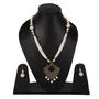 KUNDAN & MEENAKARI JEWELLERY Women's White Pearl Long Moti Mala Oxidized Pendant Set with Small Circle Earrings