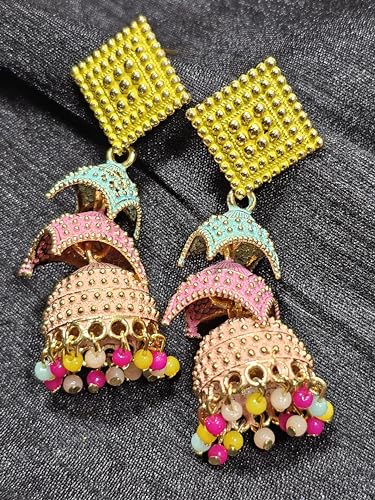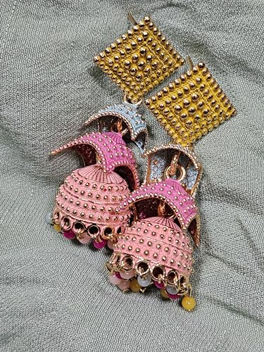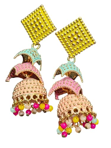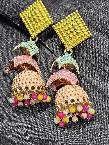 Multicolour Rani Earrings, Free Size, Metal, No Gemstone
