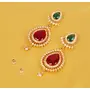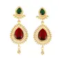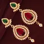 HomeFashionEarringsNEW! Touchstone Indian Bollywood Desire Very Stunning And Contemporary Grain Work Hand Embellished Rhinestone Faux Ruby Emerald Designer Jewelry Long Earrings In Gold Tone For Women.