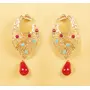 HomeFashionEarringsNEW! Touchstone Indian Bollywood Exotic Hand Curved Wire Work Trend Setter Faux Emerald Ruby Glass Drop Designer Jewelry Earrings In Antique Gold Tone For Women.