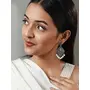 Priyaasi Blue Floral Silver Pearl Drop Earrings