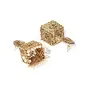 Antique gold-plated handcrafted geometric drop earrings and has artificial stones and beads. Secured with a post and back closure.